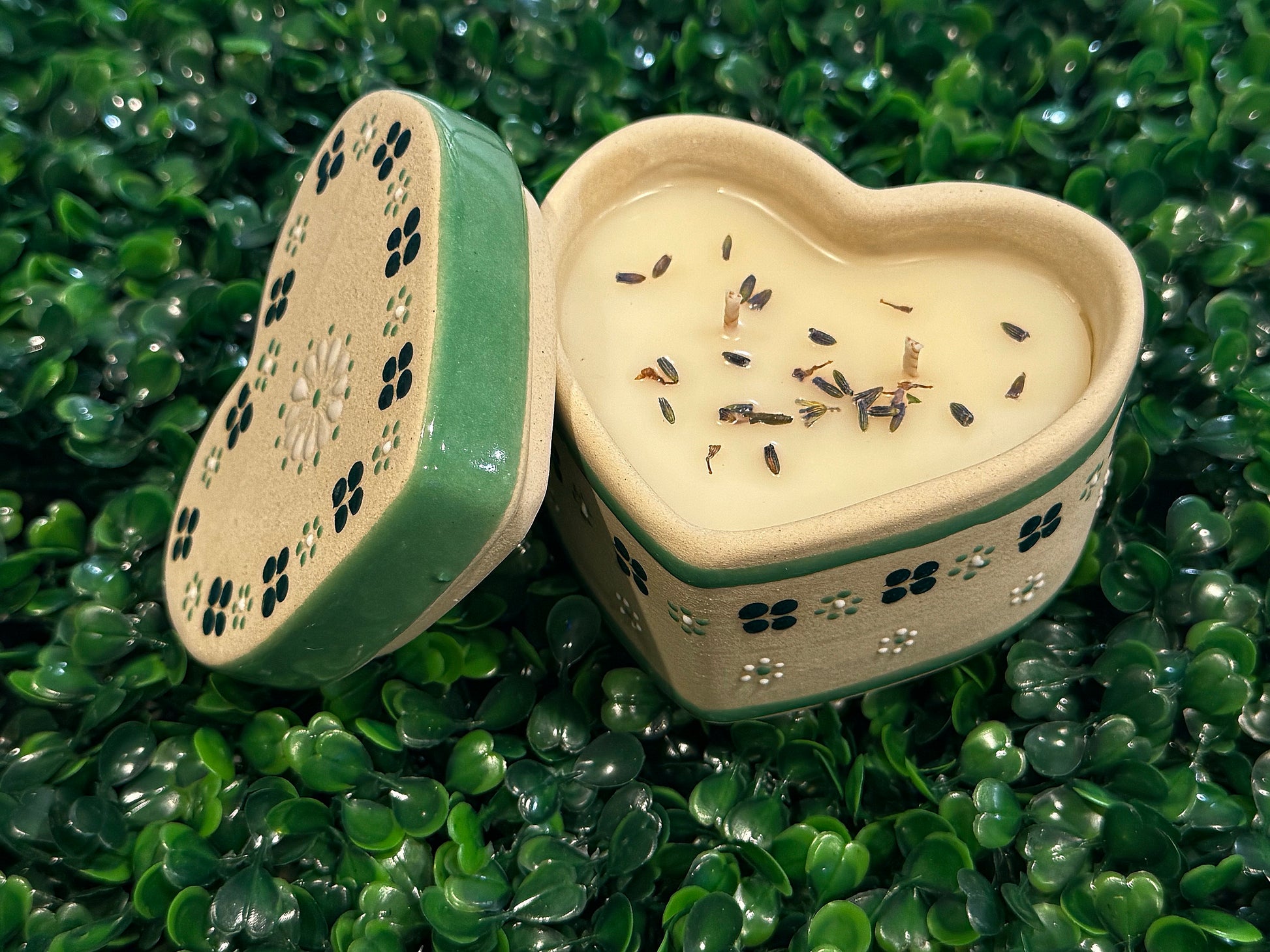 This piece is hand painted in the beautiful colors of dark green and light green, in our Lavanda-Ria scent.