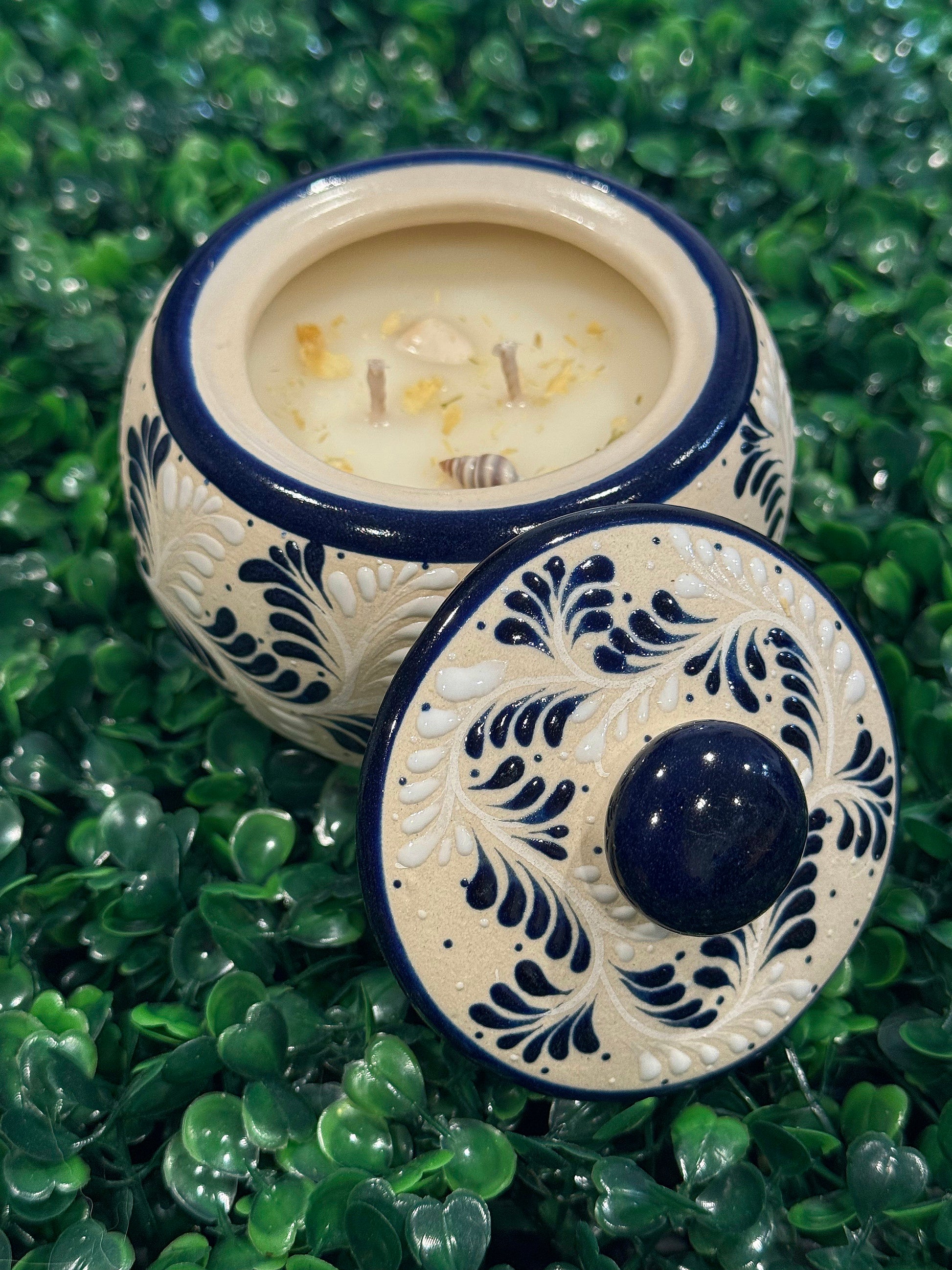 This piece is hand painted in the beautiful colors of dark blue and white, in our En El Mar scent.
